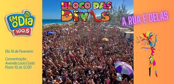 Segunda de Carnaval, 16 de Fevereiro, tem o Bloco das Divas, a partir das 2 da tarde, no Posto 10, no Recreio. E à FM O Dia vai marcar presença com muitos brindes e animação pra galera. Rádio Oficial: FM O Dia