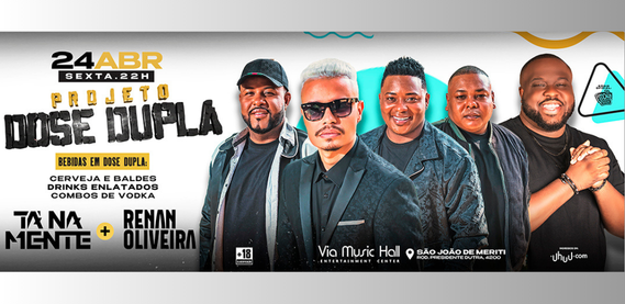 Sexta, 24 de Abril, tem Tá Na Mente e Renan Oliveira, em dois show completos, no palco da Via Music Hall. E você pode curtir de camarote com a galera. Tem promo Super Vip no App da FM O DIA. Faça seu cadastro e participe.